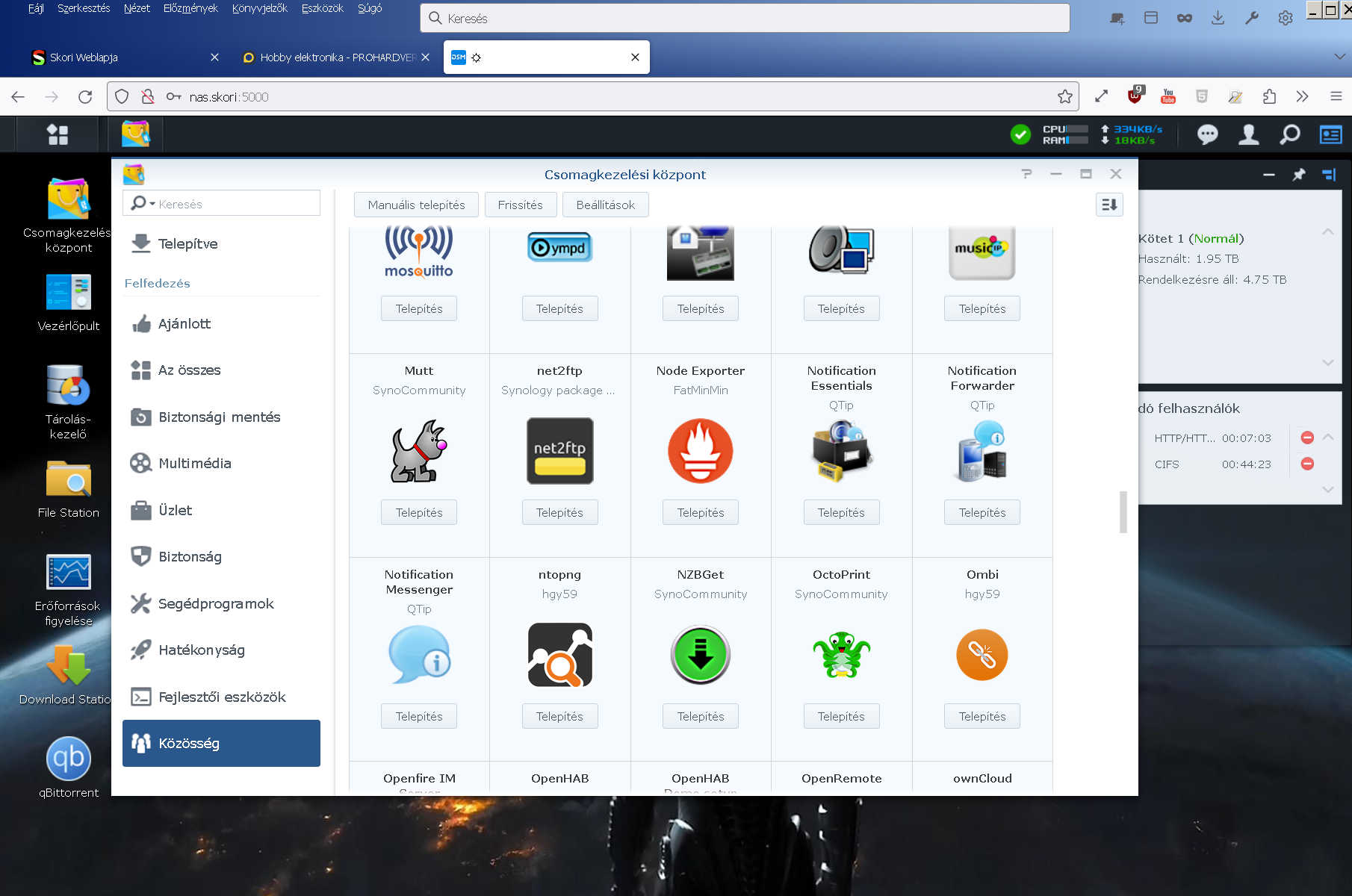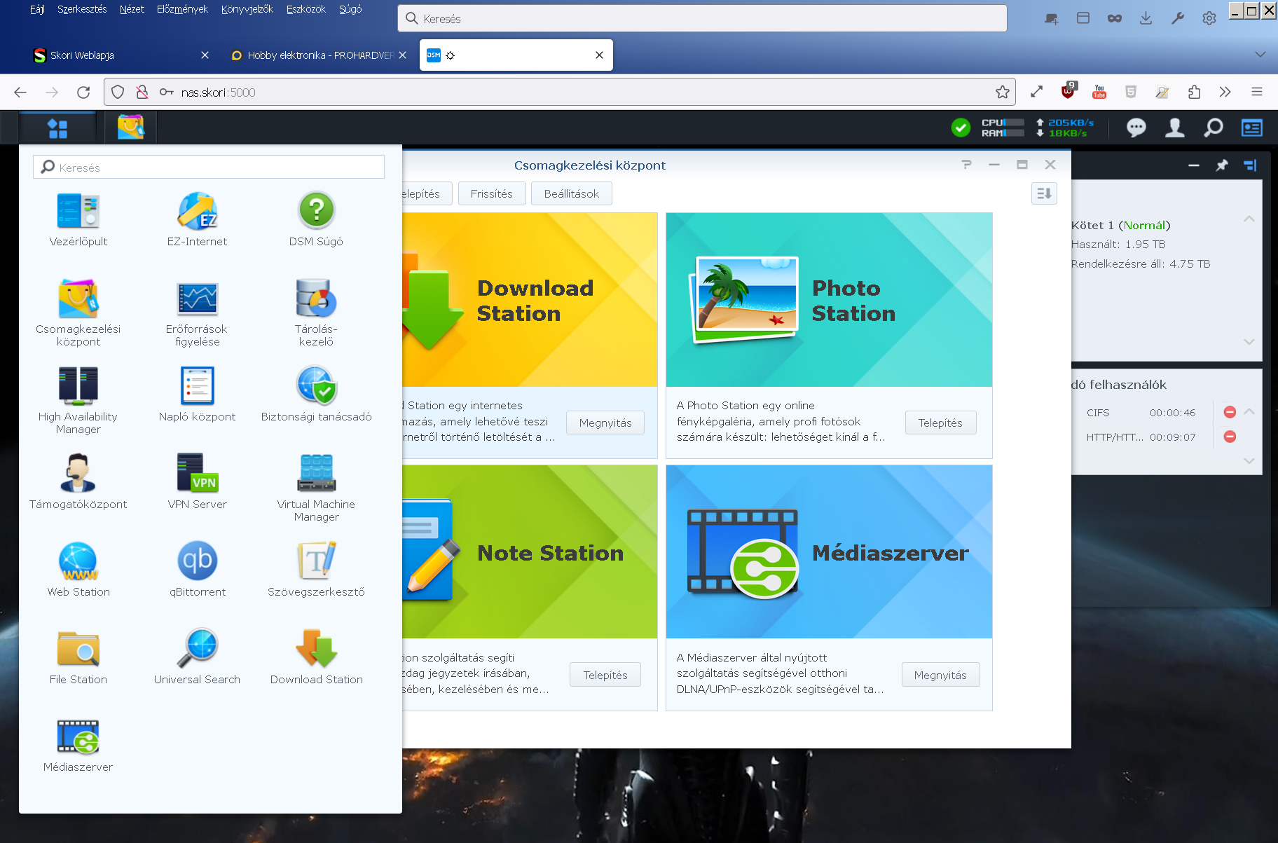 A Synology operációs rendszere ingyen letölthetõ a gyártó weblapjáról, és a hozzá készült további, telepíthetõ